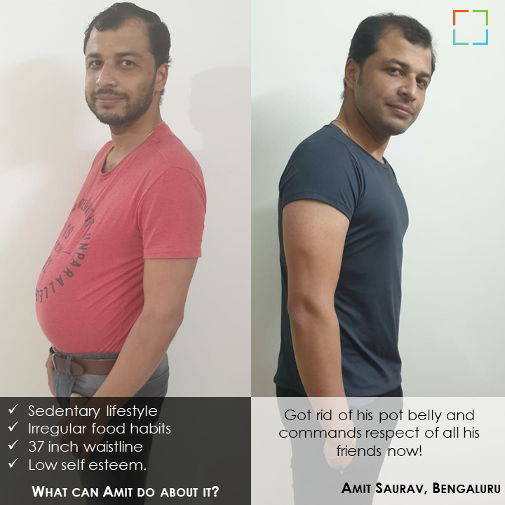 At one point, he was at 37 inches. “ I was not at all happy with my bulging belly,” Amit sighs.